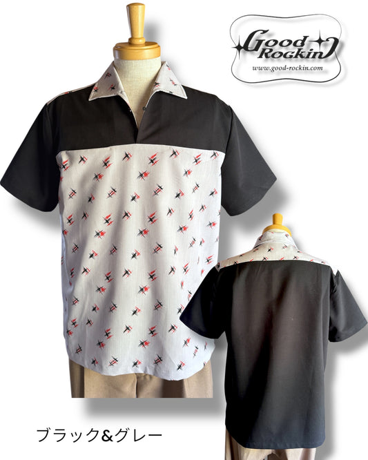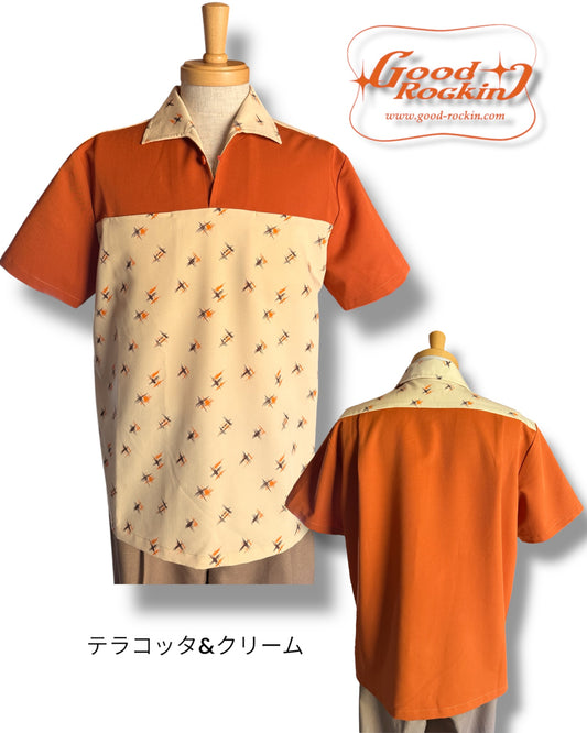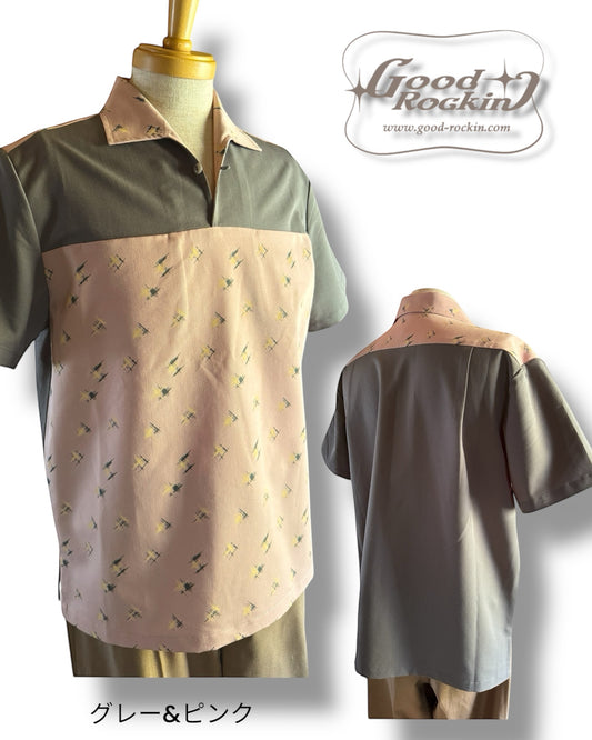 Long Sleeve Shirt "Vintage style Front Panel "/長袖別珍パネルオープンカラー腰リブシャツ