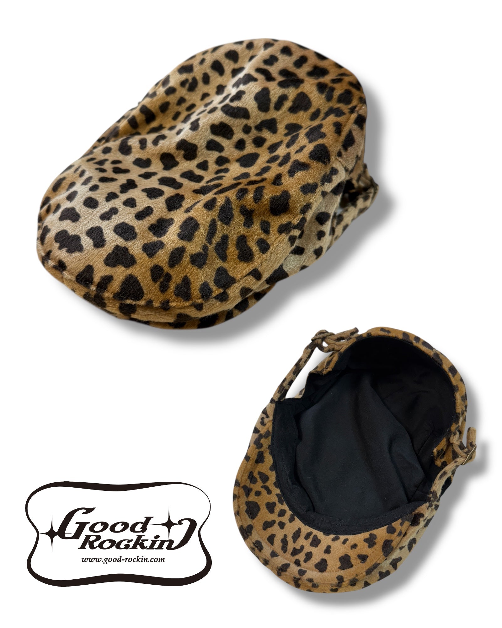 ロカビリーファンの定番アイテムでもあるハンチングをレオパードファー生地(ライトオン)で制作。ロカビリースタイルのみならずロッキンコーディネイトにもお勧めのハンチングです。