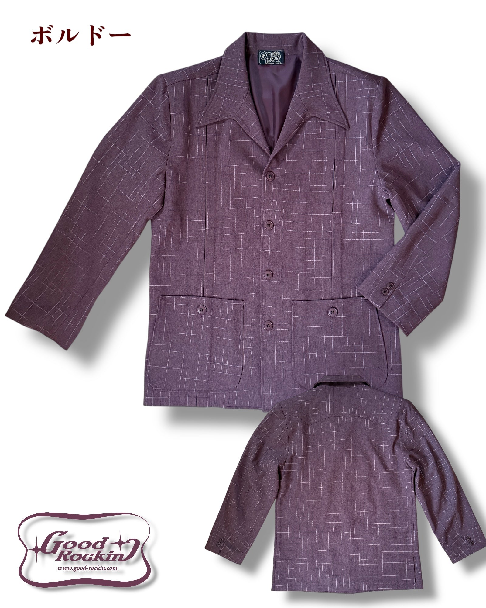 1950年代スタイルの特徴でもありますラウンドカラーとボックスプリーツが特徴のヴィンテージジャケットを基に企画生産致しました。バックスタイルはウエスタン調の背ヨークと動きやすいサイドベンツ仕様。ブラックにはホワイト、ピンクベージュにはグレー、ボルドーにはペールグレーのカスリ総柄プリントのオリジナル生地は着心地の良さはもちろん、シワを気にする事無くお手入れもしやすくなっております。通年楽しめる様、裏地は背裏のみになっております。ボトムス次第で、ドレスアップもカジュアルでも楽しんで頂けます。