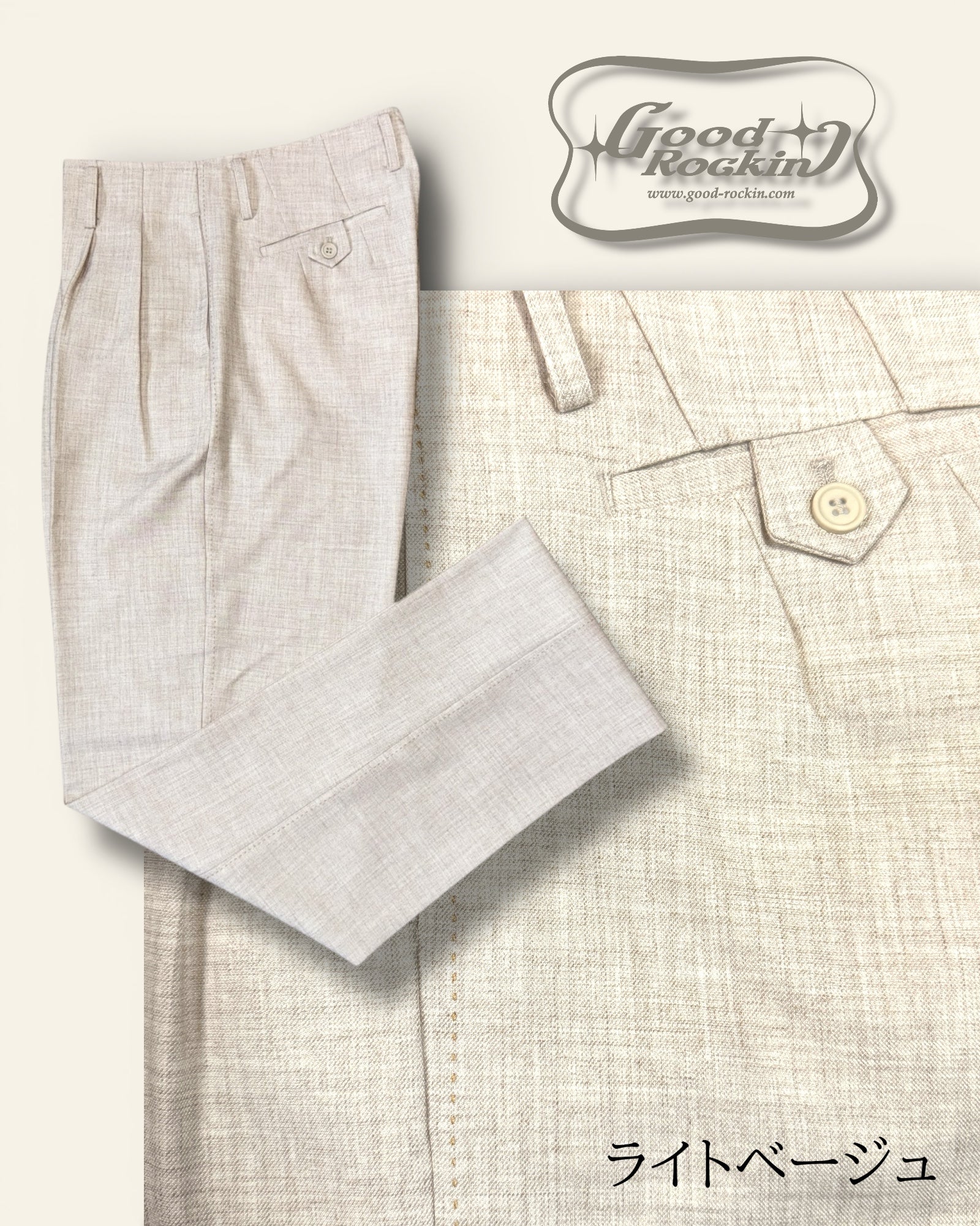 Vintage Style 2pleats trousers/GRP-061ヴィンテージスタイルファブリックハンドステッチツープリーツトラウザーズ