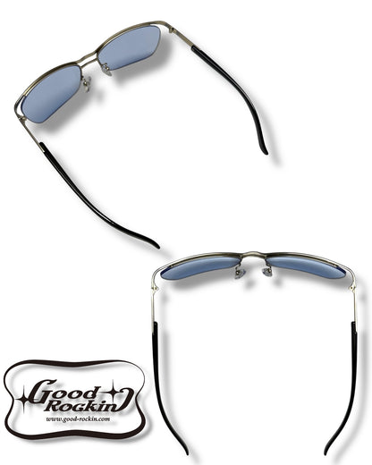 緩やかなVラインとツーブリッジ仕様がクールな印象のメタルブローサングラスです。細身のレンズになりますので綺麗目なスタイルにもお勧めの一本です。シルバーはライトスモークレンズとライトブルーレンズ、ゴールドにはブラウンレンズ、ガンメタにはスモークレンズの4カラー展開です。