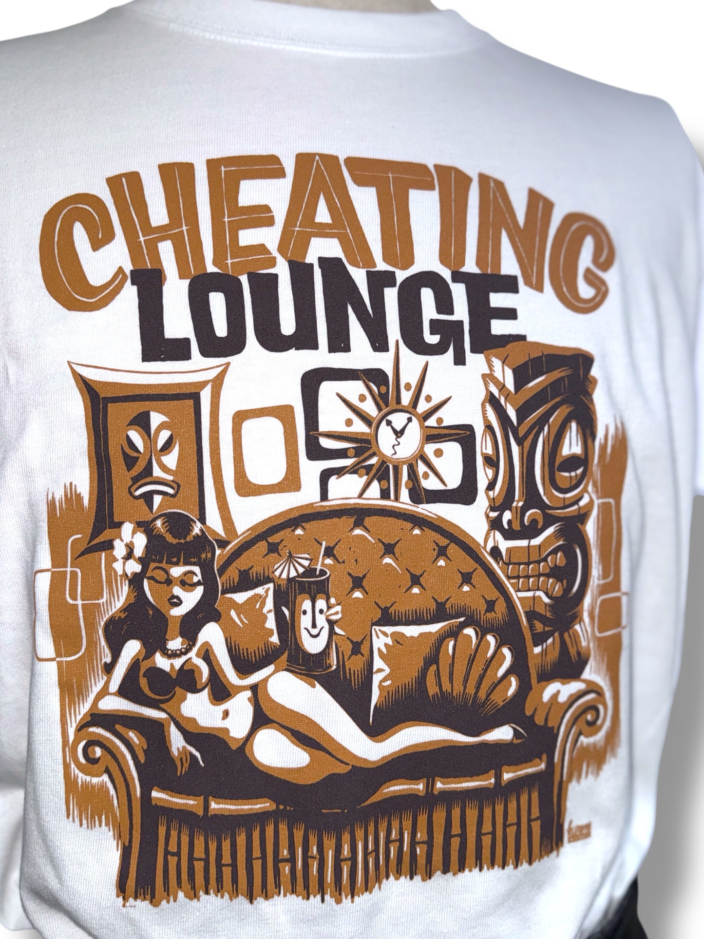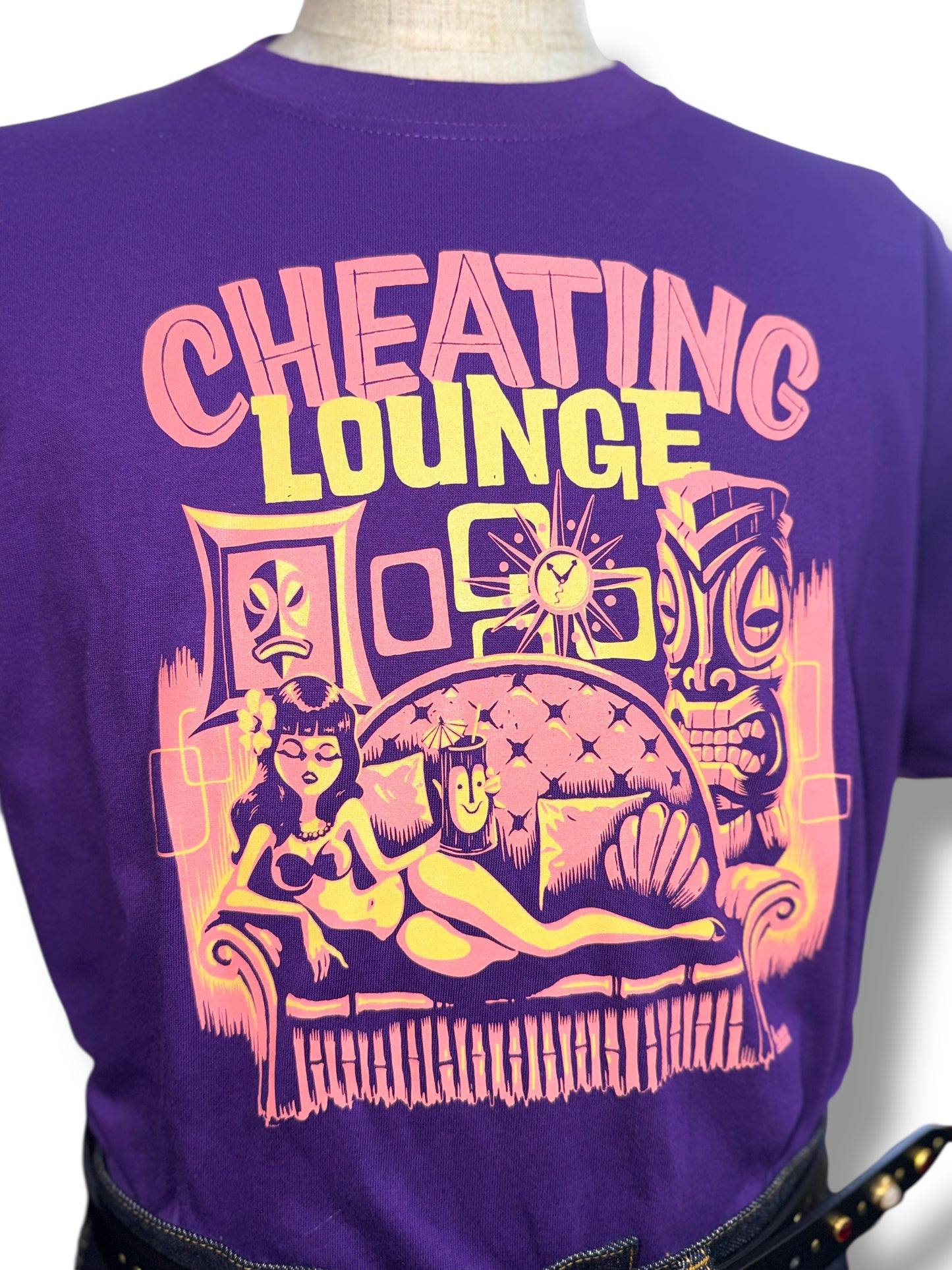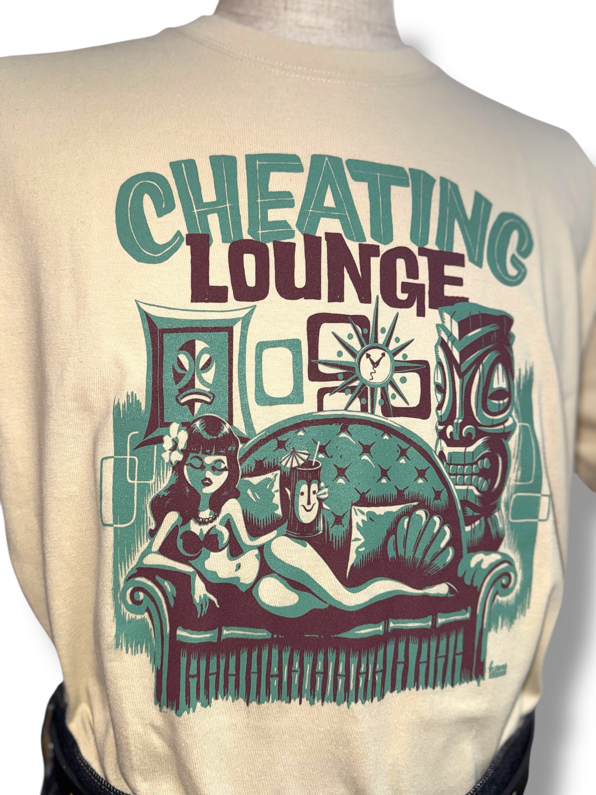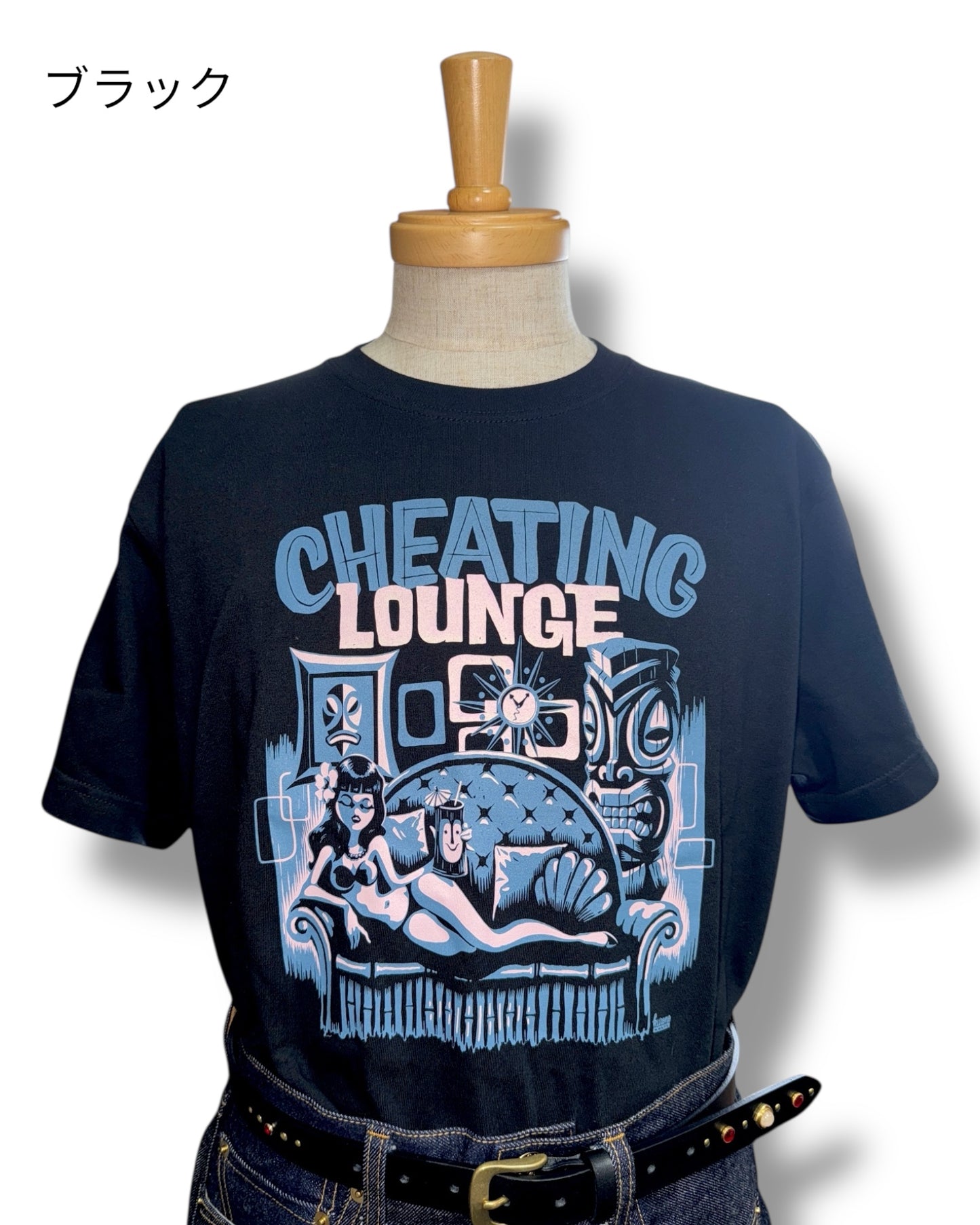 レトロなエキゾチックの魅力をチーティングラウンジのコンセプトに基づき表現した一枚です。グッドロッキンのアートワークも数多く手掛け、国内外で活躍中のアーティスト「Kurono」とのコラボ作品でもあります。サイズはレディースM、LとメンズS、M、L、XLの6サイズ展開、カラーホワイト、ブラック、サンドベージュ、パープルの4色展開です。